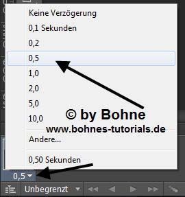 Stelle eine Frameverzögerung von 0,5 Sekunden ein