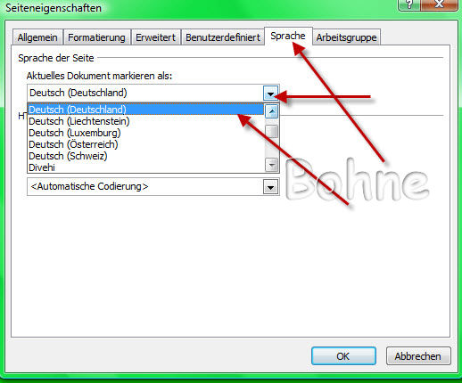 gehe jetzt zum Kartenreiter "Sprache" und gebe hier Deutsch (Deutschland) ein