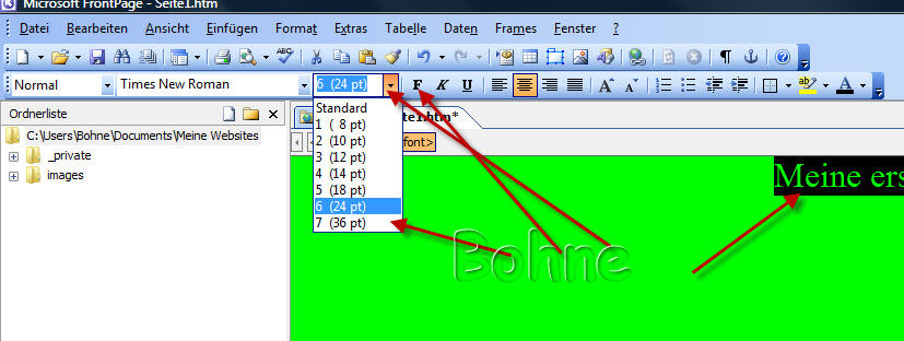 so, als Überschrift ist die Zeile nicht zu gebrauchen da FrontPage als Standard 3 (12 pt) nimmt