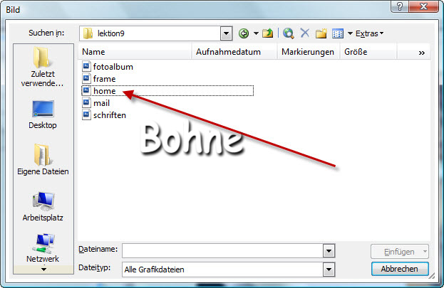 öffne deine Lektion 8 oder erstelle dir ein neues Frame-Set