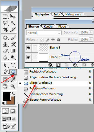 1. Aktiviere das Formwerkzeug-> Ellipse