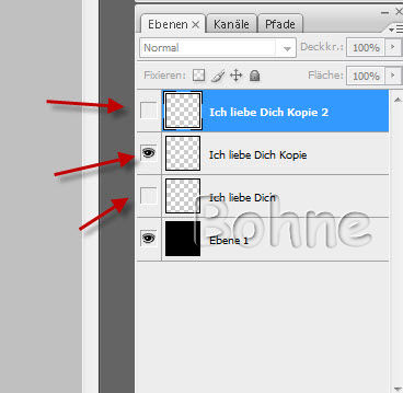 5) die Textebene duplizieren, dann das Auge auf unsichtbar stellen und auf