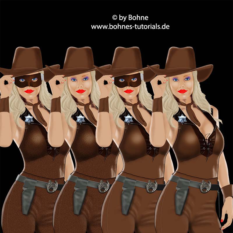 Du kannst die Grundformen alle umfärben, so dass Du die Kleidung, wie oben zu sehen, in verschiedenen Farben hast.