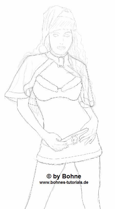 04) Nun beginne ich erst mal grob meine Figur vor zu zeichnen, dass sieht dann in etwa so aus