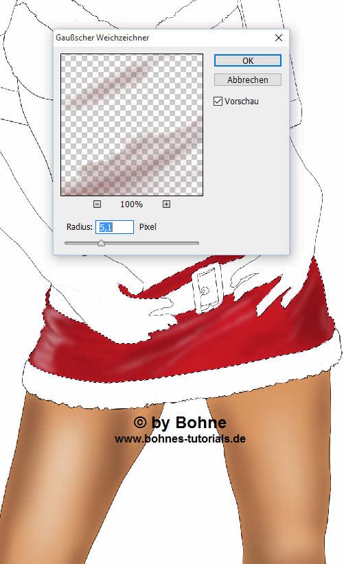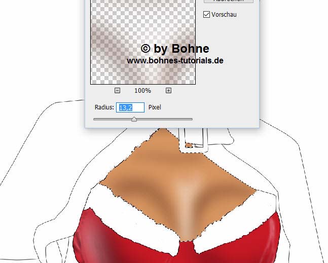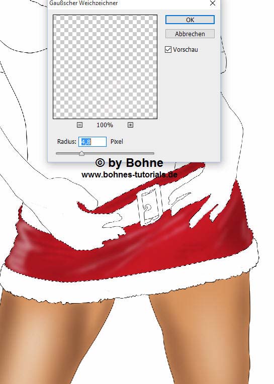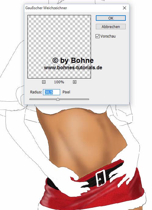 Da unsere Sexy Santa echt aussehen soll, brauchen wir Höhen und Tiefen im Bild,