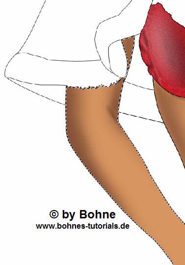 Verschiebe die Auswahl wieder und fülle sie mit der dunkleren Hautfarbe