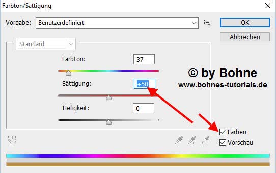 Bild -> Korrekturen -> Farbton/Sättigung (Häkchen rein bei Färben)
