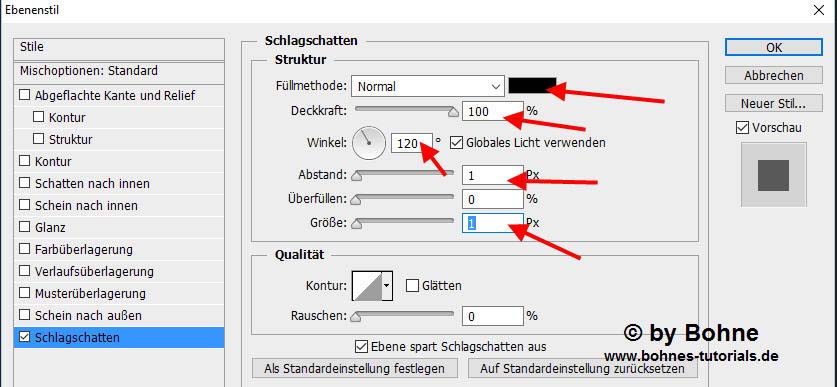 Aber nicht vergessen den Ebenenstil vorher zu rastern