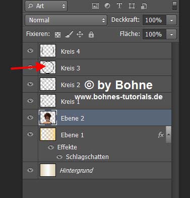 Klicke mit gerückter Strg-Tase auf die Ebenenminiatur der Ebene "Kreis 3"