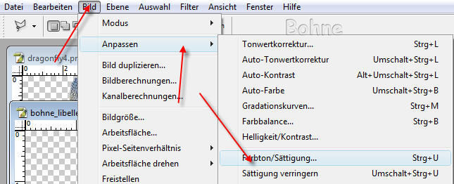 17.Über Bild-> Anpassen-> Farbton/Sättigung