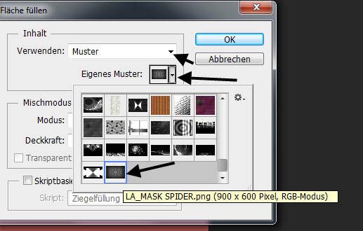 Über Umschalt+F5 mit dem Muster "LA_MASK SPIDER" füllen